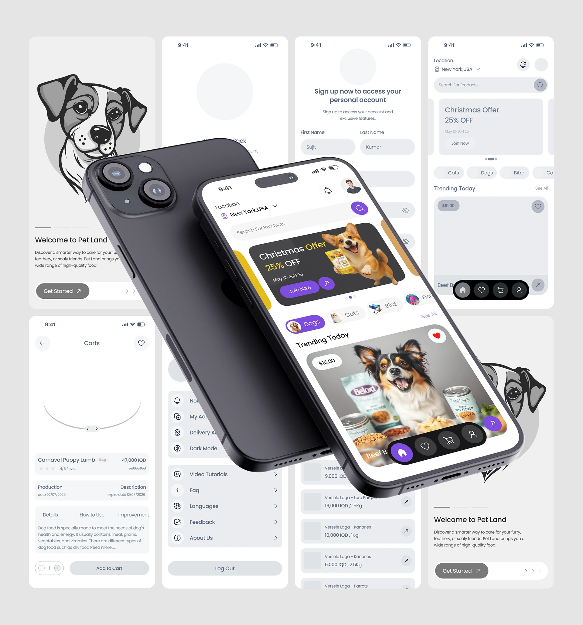 Pet Land aims to make pet care effortless by providing easy access to quality food, trusted medicines, and exciting toys—all from verified vendors. The focus was on building a seamless experience where users can quickly find, compare, and purchase products while feeling confident about their choices. Beyond functionality, the goal was to establish trust, warmth, and community — reflecting the love and care people share with their pets.