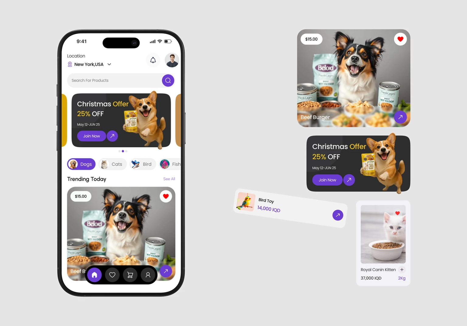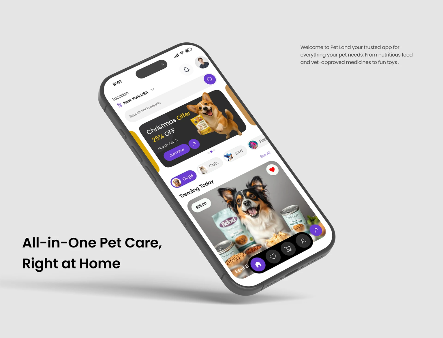 all-in-one platform that caters to every pet owner’s needs while ensuring trust, convenience, and engagement. The goal was to design an intuitive app that simplifies pet care — from ordering nutritious food and vet-approved medicines to discovering fun toys — all within a few taps. The biggest hurdle was combining e-commerce efficiency with a warm, pet-friendly experience that feels personal and reliable to every user, whether they’re a first-time pet parent or a long-time animal lover.